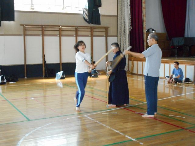 基本組3部の2名は、竹刀の打ち込み稽古で小手、面の2段打ちの稽古中{emoji index="162"}です。
