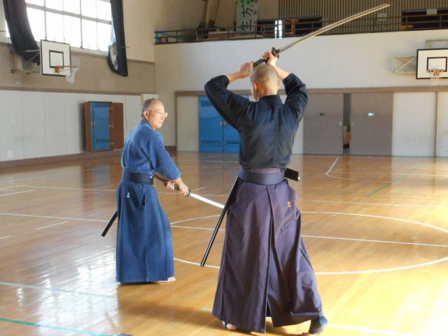 今日は、「文化の日」一般の部のみの稽古会、祝日に千代田小学校の体育館が確保出来た際は、試合稽古を行ったりしていたのですが… 今日は、チョット集まりが良くないので先ずは、(金田先生提供)居合刀を使わしてもらい「剣道形の稽古」を行いました。普段の木刀との大きな違いは、抜刀、納刀の際、当たり前の事なのですが、刀には「鞘」が有ります。特に納刀は練習が必要ですね。皆さんも挑戦してみて下さい。