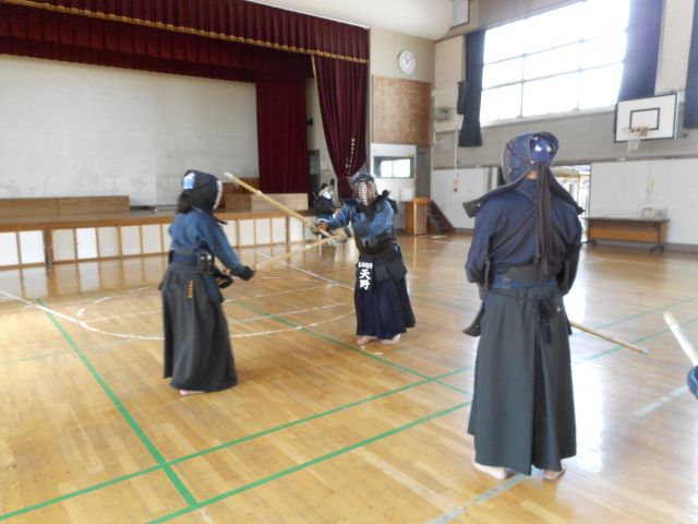 基本組1部、2部合わせて5名 防具組:小学生4名 中学生:2名 でした。チョット寂しいかな? でもその分じっくりと稽古が出来ました。