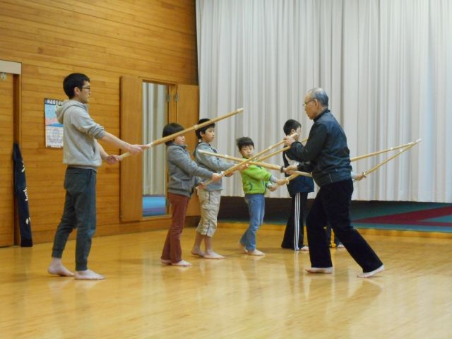 最初に皆で準備体操、基本の素振りまでを行いました。