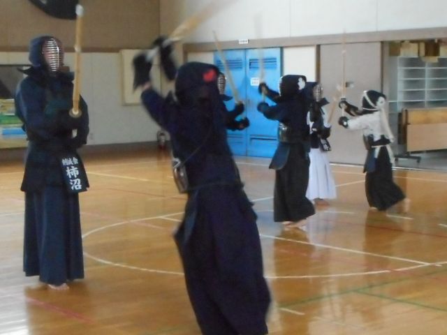 それから各組に分かれて基本組は、初めに「竹刀打ち」それから実際に先生方の「面」を打たせてもらう「打ち込み稽古」を行い、防具組は「切り返し」を重点的に稽古を行っていました。