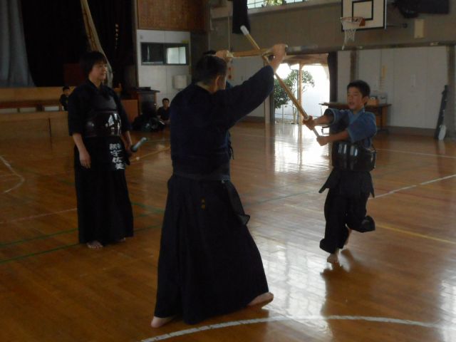 木村先生の基本組2部では、「早や素振り」(実際に元立ちの竹刀を打ちます。)甥っ子の稽古に付き合う「マダム」も頑張っていますよ{emoji index="150"}