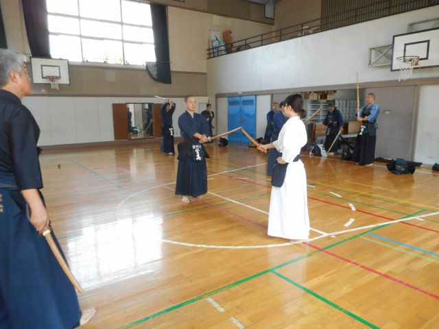 一般の部では、稽古前に「剣道形」に取り組まれている方が何組か見られました。4・5段審査が来週でしたね。「頑張って下さい。」