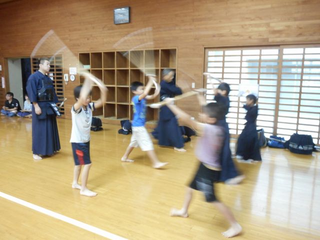基本組は、お互いに「竹刀打ち」を行いました。受ける時、少し恐々していた子も段々と慣れてきました。