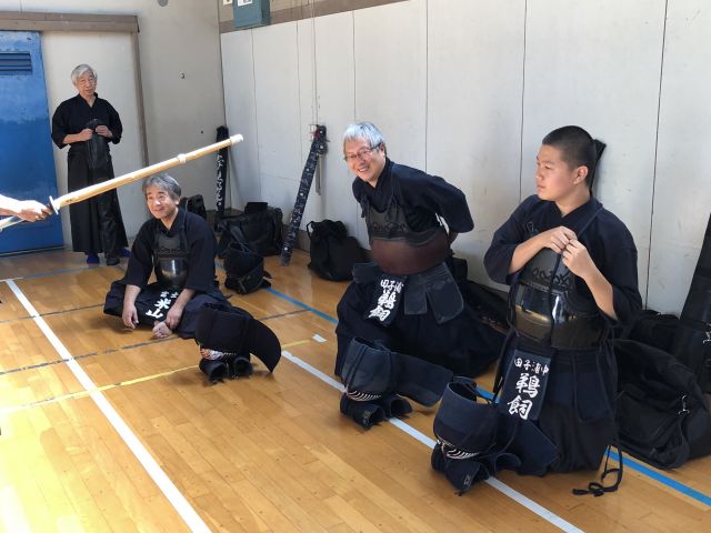 最後に金田先生より60歳以上の先生方の素交会での稽古会の様子のお話があり、黄色い刺繍の名札の先生方は80歳以上の先生方であり稽古の際は高齢の先生方に対する礼をもって稽古をする事。