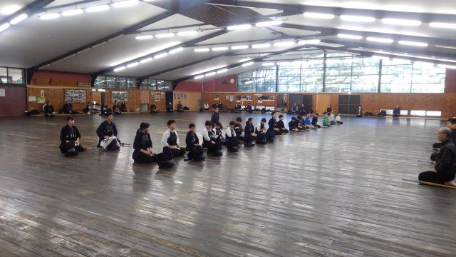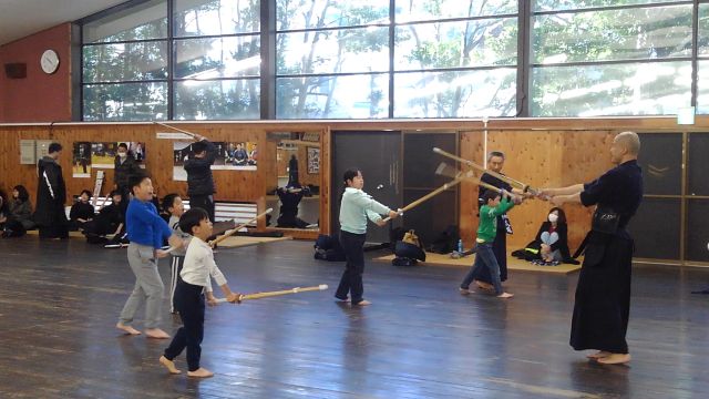 いつもの体育館と違う広い養浩館の床「生の板」の感触を覚えておいてね!