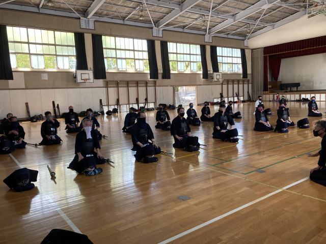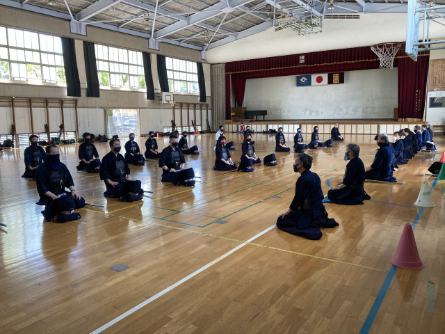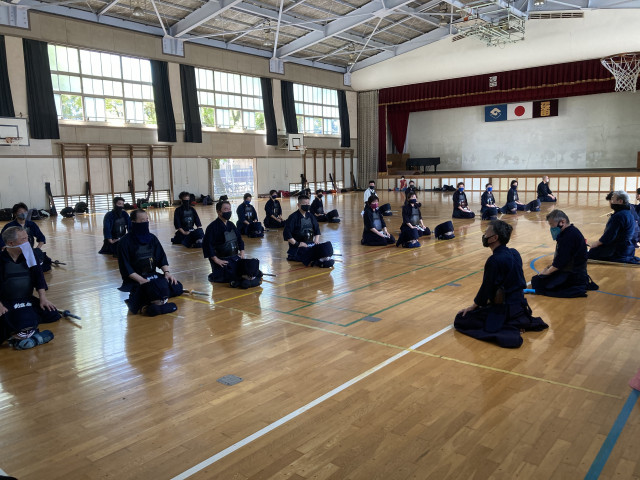 外気温が35℃を超えている中でのマスク稽古なので、自分の体調ペースに合わせて休憩や水分補給は自由となっています。