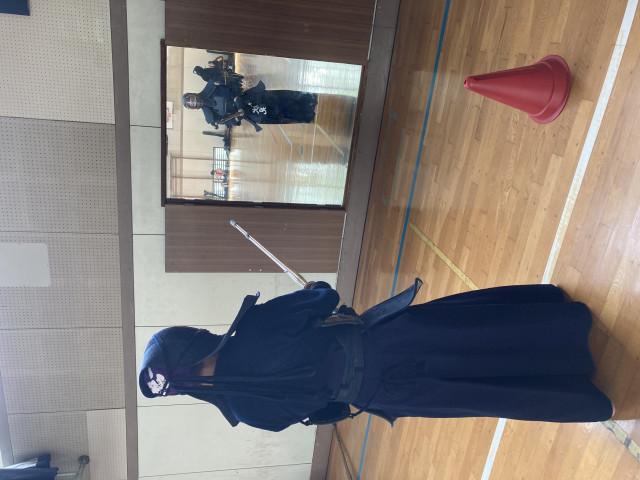 剣道の稽古でこの立姿ほど難しいものはありません。こうやって鏡で何回も確認して自分の理想の形を作っていきます。剣道の立ち姿は普段の立ち姿とは相当違うもので、チョッとおかしいだろうと言うほど胸を張ります。私の意見ですが。