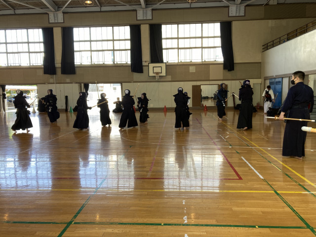 防具を着けて稽古するのは中学生を中心に大人も混ざって行っています。