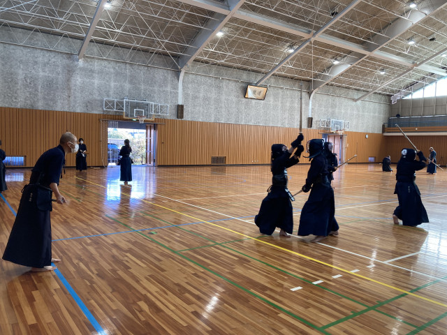 子供たちは先生の掛け声に合わせて必死に面を打っていました。