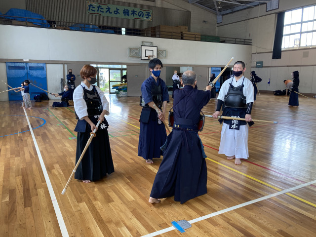 主任先生が大人の有段者に対して打突の私道をされている姿です。