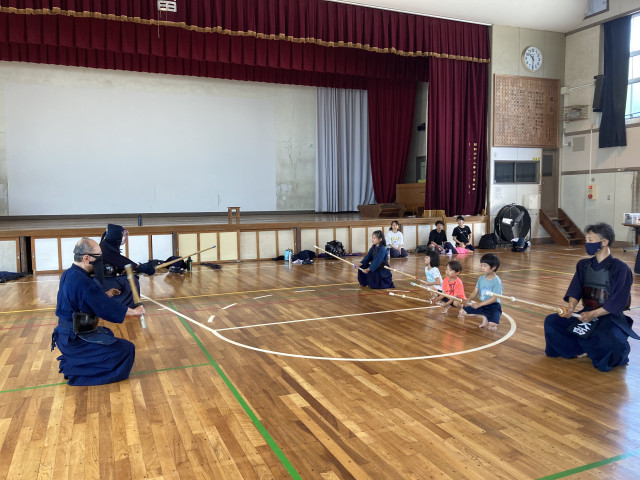 みんな先生の話を一生懸命に聞いて見様見真似で稽古に打ち込んでいます。