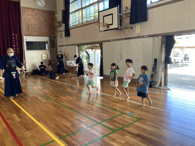 子供の部は先生が工夫をして子供達が飽きないような練習をしています。集中力が持続する範囲内で楽しく稽古しています。