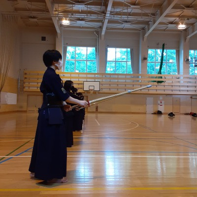 剣道形から基本の足さばき、そして互角稽古をやりました。