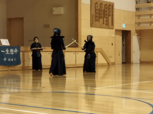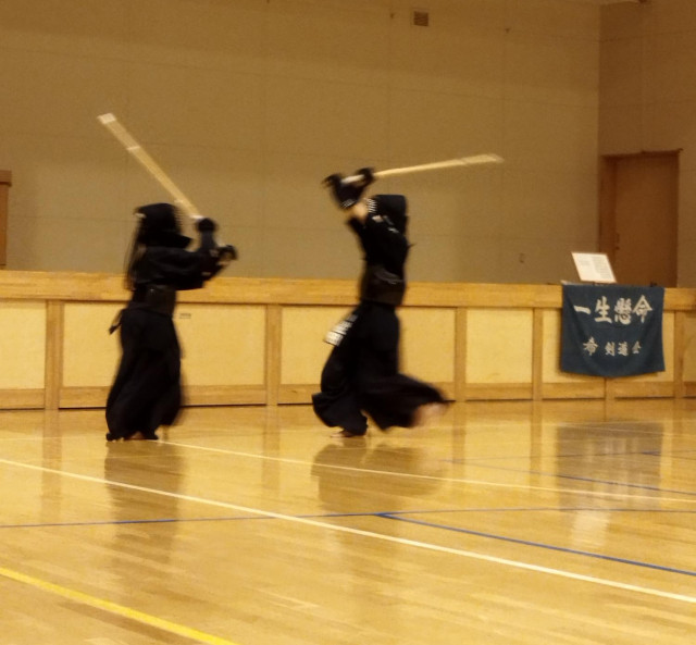 本当の試合のように技を出し、剣を合わせています。