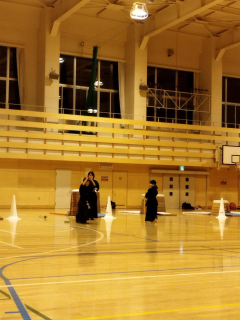 木刀での日本剣道形を少しやってから、面を着けての稽古です。