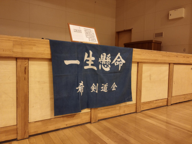 希剣道会の団旗です。稽古の時は正面に掲げています。