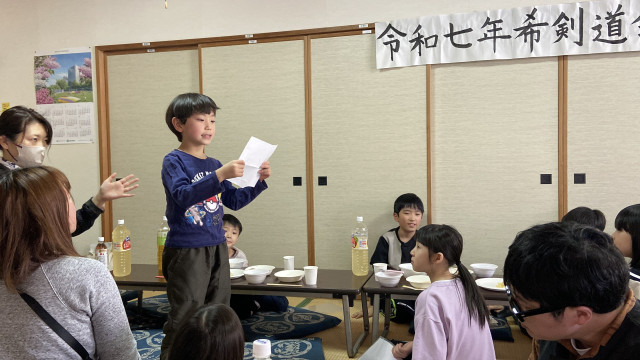稽古後、会場を移動して新年会が行われ、ひとりひとり今年の抱負を発表しました。みんな今年の目標に向かって頑張ってください!