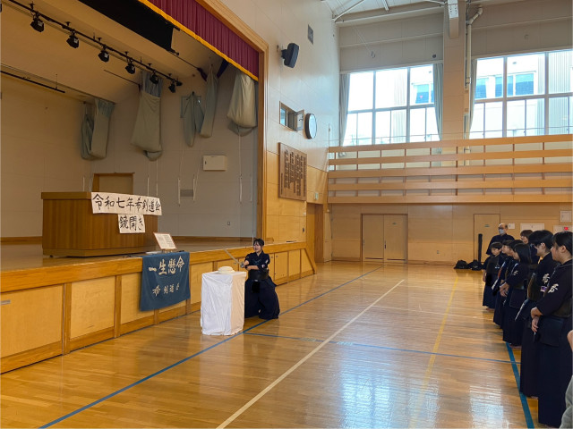 初稽古は鏡開きからはじまりました。みんなひとりひとり刀を振り下ろします。気合いが入りますね!今年もよろしくお願いします!