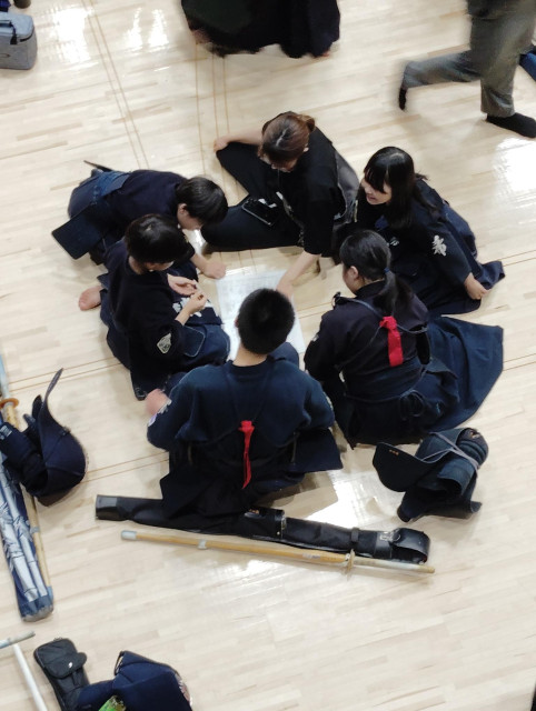 自然と丸く輪になって、作戦を立てているのか、先生の言うことを聞いています。