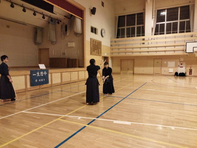まずは木刀、剣道型の確認をしています。