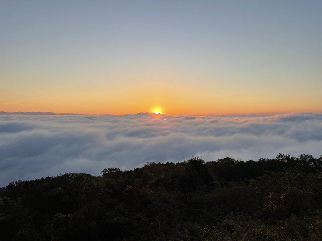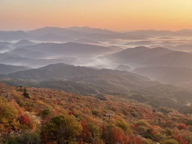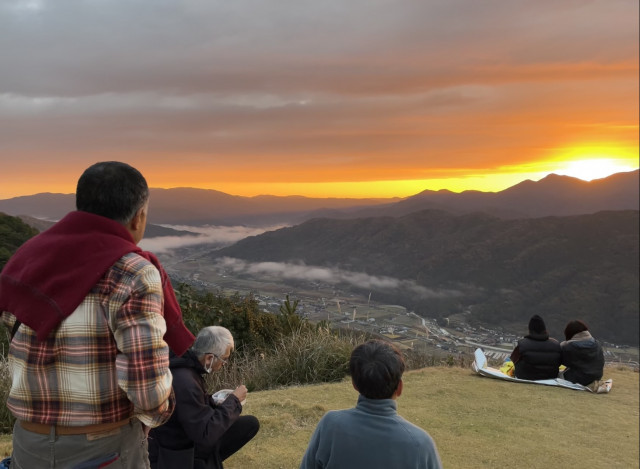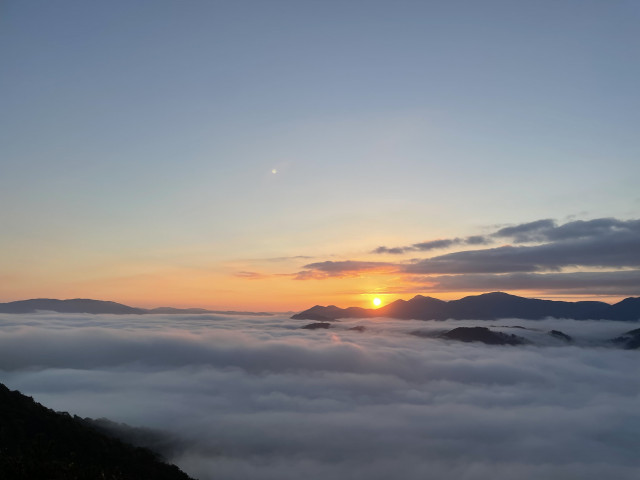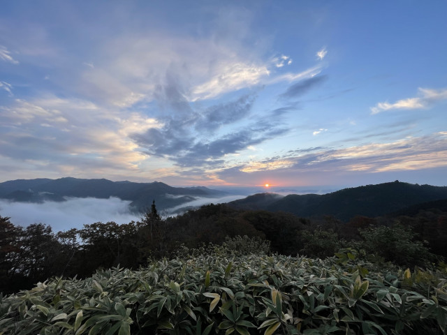 広島を朝5時に出発して暗い熊の出そうな林道をひたすら登り山頂で夜明けを待った。