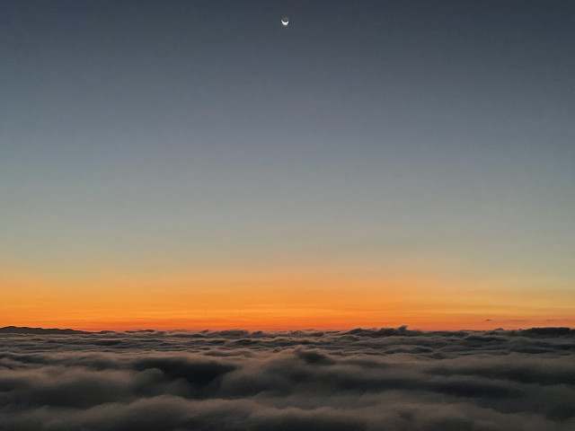 他に誰もいない気温0度の山頂から見る雲海は素晴らしい。