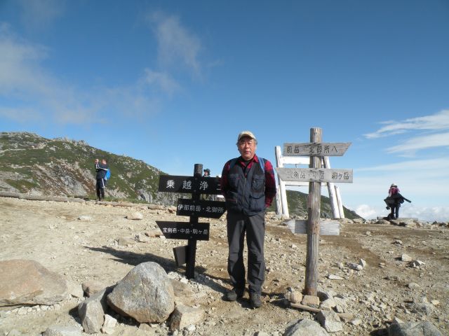 5日バス、ロープウエイで千畳敷(2600m)、7:30出発、乗越浄土(往復)木曾駒 が岳2956m、宝剣岳2931m、極楽平、千畳敷12:30、一旦下山し車中泊