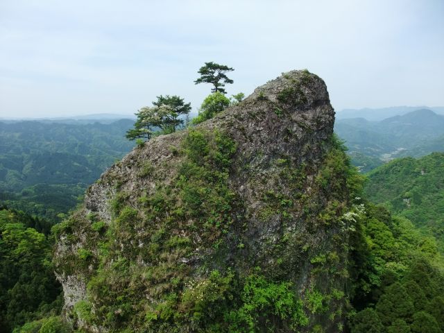 数多くある岩峰群は古くから霊場として登られ、岩峰の上や岩屋には必ず石仏が祀られ(車道沿いにも野仏が普通に祀られ人口より石仏がはるかに多いと言われています)ています。私の前にあるのは、約3mの柱状の岩2本を両岩峰から伸ばして突き合せただけの橋、千年以上落ちずにいるのでしょうか。