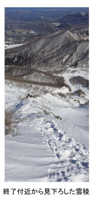 山行日の雪質は安定し、かつ、トレースもあったので楽に登れたが、降雪後の場合は全行程でラッセルを強いられるハードなルートになる。天候、雪質が安定する3月は絶好のバリエーション入門ルートと言える。
