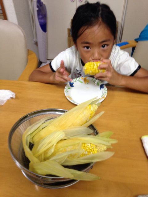 川場村カップの野菜収穫体験で頂きました、トウモロコシです。