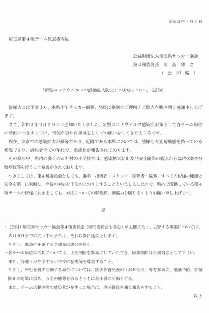 サッカー協会からも自粛の要請が文書で回っています。