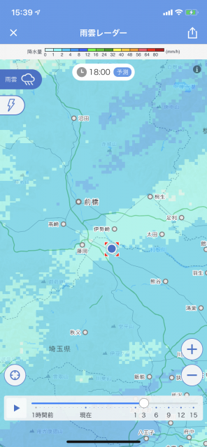 レーダーなどを見ながら判断していますが、本日も降り出して来ています。