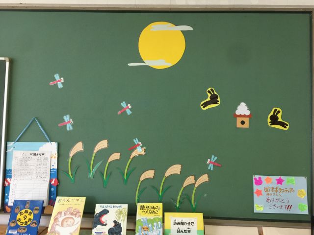 絵本コーナーでは、月がのぼり。。