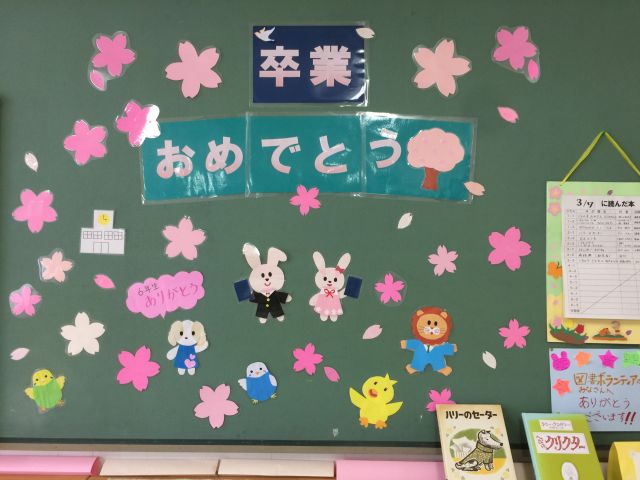 ひな祭りも過ぎましたので、絵本コーナーに卒業祝いのメッセージを飾りました(#^^#)