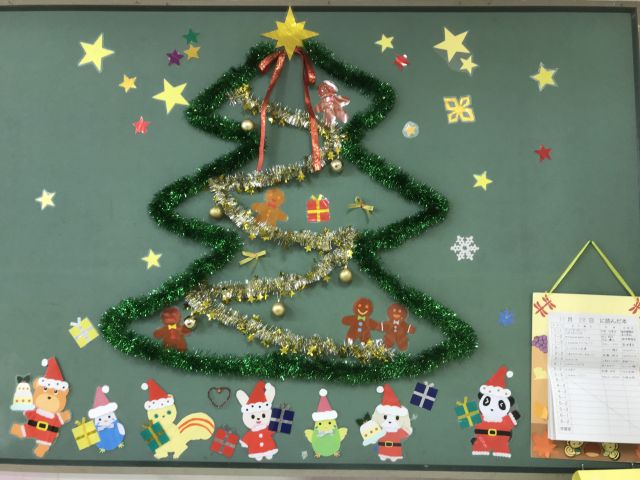 飾っている時、何をしているのかと 子ども達が興味津々で覗きこみ。ツリーやクッキーマンを見て喜ぶ姿に、こちらもワクワクほっこりと。