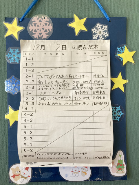 本日は、2、3年生と学習室の読み聞かせがありました。学習室では、『ブレーメンのおんがくたい』のエプロンシアターをおこないました。以前、東住フェスティバルの図書ボラコーナーで使用したものです。コロナ禍で学校行事も縮小されており、なかなか日の目を見ないので学習室の読み聞かせにて使用していただきました。子どもたちは、絵本の読み聞かせとはまた一味違う楽しみ方ができたのではないでしょうか。