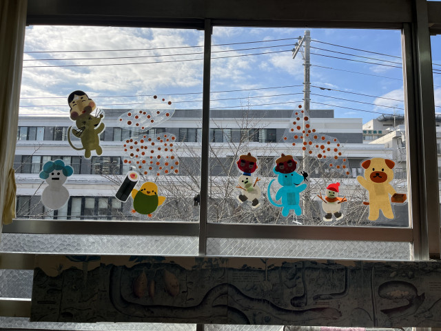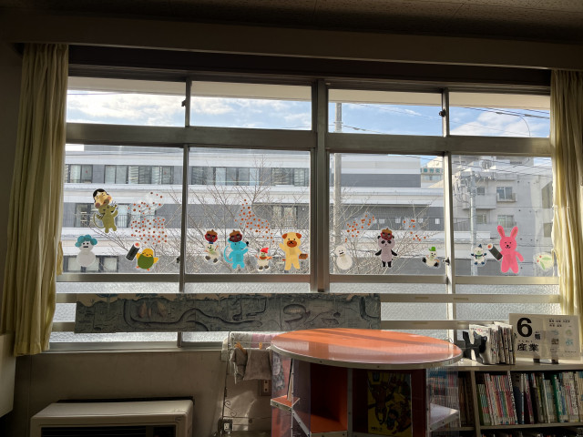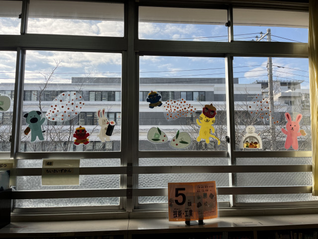 もうすぐ節分ということで、図書室窓の装飾を変更しました。