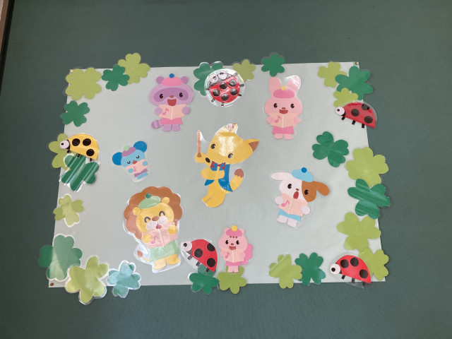 絵本コーナーでは、てんとう虫が動物たちと仲良くおしゃべり。