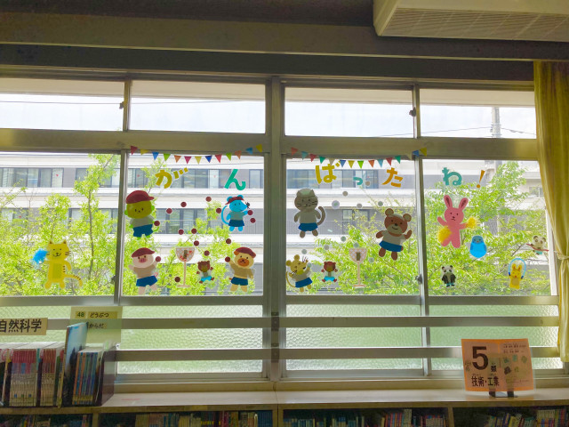 今月は運動会があったので、図書室でも動物たちが楽しそうに応援していました。
