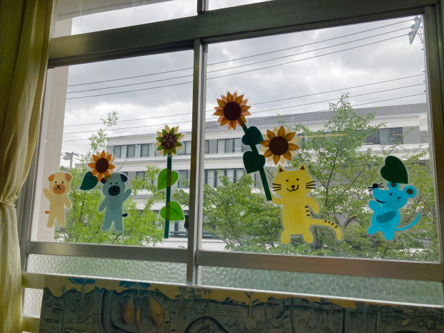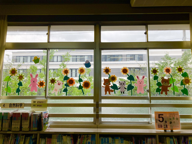 図書室の装飾も、しっとりとした梅雨から元気なひまわりへと変更しました。