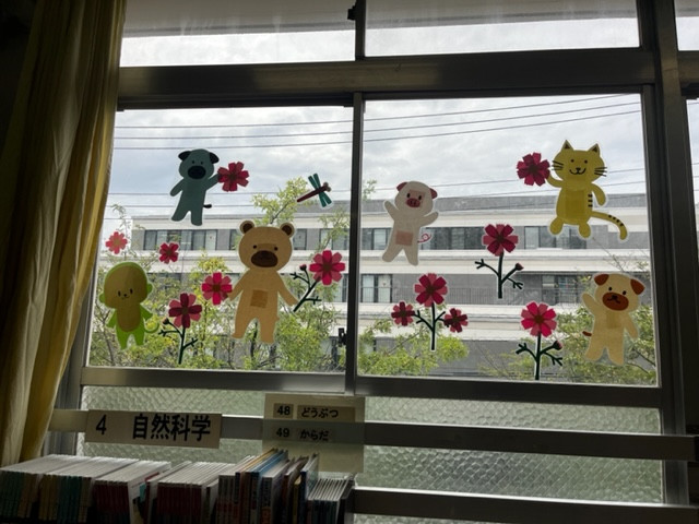 9月1日の活動では、図書室の装飾をひまわりからコスモスへ変更しました。