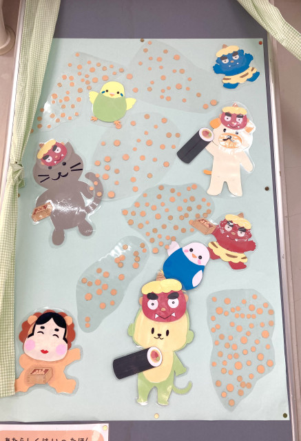 2月に入ってすぐ、図書室では節分の装飾を施しました。
