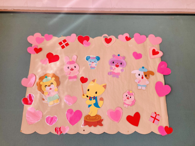 絵本コーナーは、ハートを使った可愛らしい装飾に変更です。