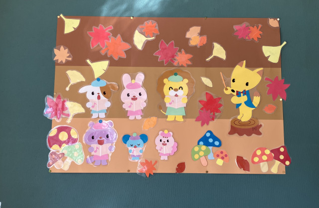 メンバーでいろんなアイデアを出し合い、素敵な秋らしい装飾になりました。子供達に秋を感じてもらえたら嬉しいです。