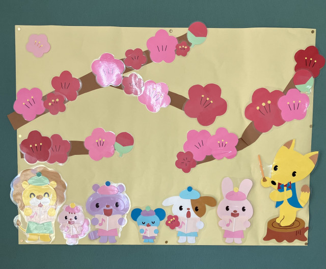 そして、絵本コーナーには、梅の花を飾り、こちらも花を通して季節の移り変わりを感じてもらえたら嬉しいです。
