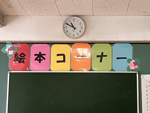 そして、新たにカラフルな画用紙を使い、『絵本コーナー』の文字も貼りました。
