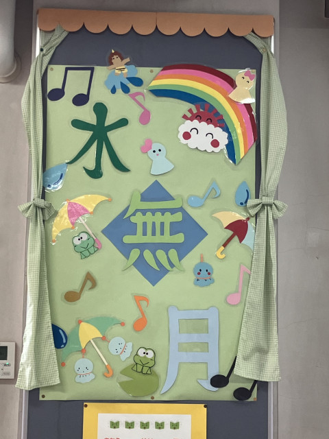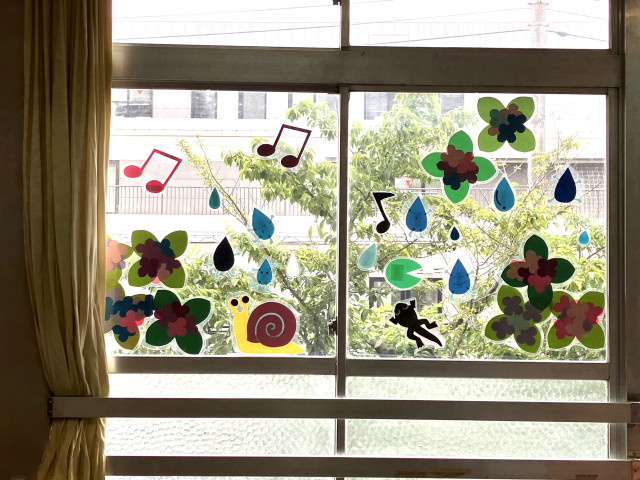 また、先週制作した新しい飾り、音符やしずくを飾り、より一層明るい雰囲気になりました♬♪
