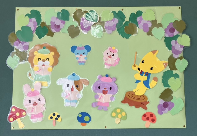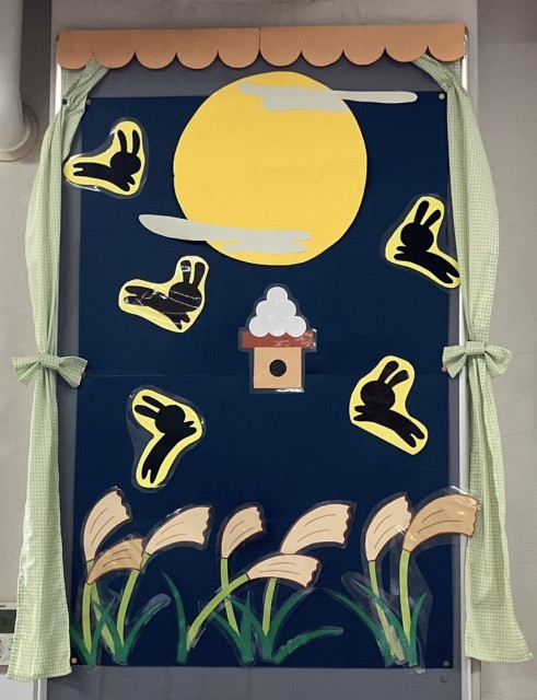 絵本コーナーは葡萄ときのこに、掲示板はお月見の飾り付けをしました。