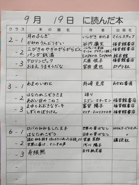 2週間ぶりの読み聞かせ、2年生、3年生、6年生に行いました^ ^